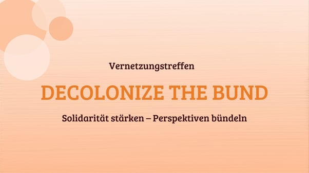 Wir laden euch hiermit herzlich zum nächsten bundesweiten Vernetzungstreffen Decolonize The Bund ein, das dieses Jahr erstmals in Hamburg stattfindet. Nach mehreren Jahren in Berlin wird die Plattform damit in eine neue Region getragen und erstmals gemeinsam mit norddeutschen Akteur:innen weiterentwickelt. Ziel des Treffens ist es, bundesweite Initiativen, Aktivist:innen, Kultur- und Bildungseinrichtungen sowie politische Entscheidungsträger:innen zusammenzubringen, die zu Dekolonisierung, Rassismuskritik und einer gerechten und intersektionalen Erinnerungskultur arbeiten. Gemeinsam wollen wir uns vernetzen, Erfahrungen austauschen und neue Impulse für eine solidarische, dekoloniale Erinnerung setzen.